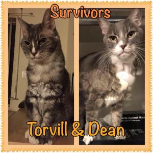 I’m Torvill and I’m the newest hospice cat here at SOS. Together with my “brother” Dean, I was rescued from the euthanasia list at PACC. It was known that I have a kidney insufficiency and SOS saved us anyways. Two different vets confirmed my condition and my count is down to 1/4 of what it should be.